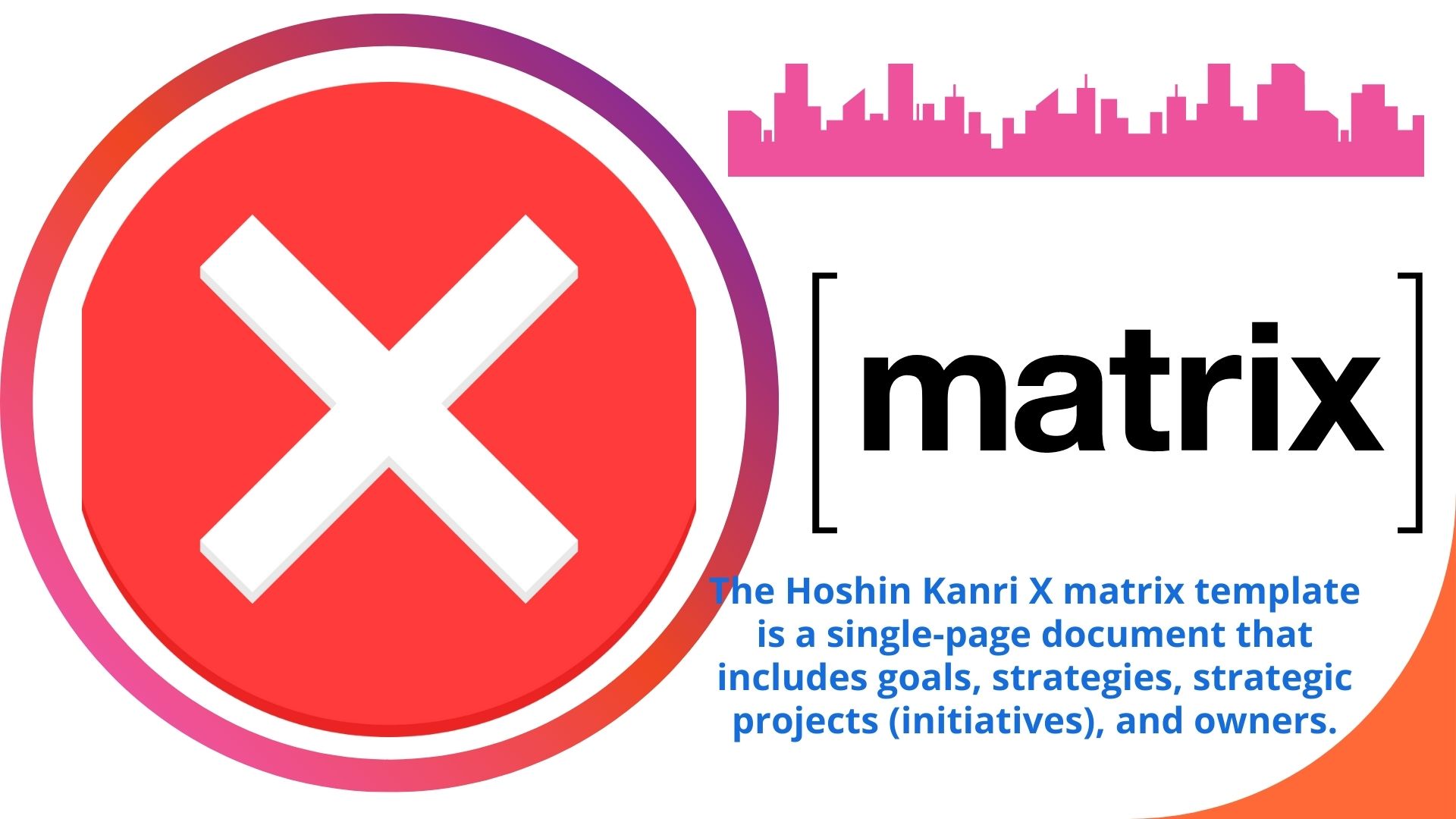 The Hoshin Kanri X matrix template is a single-page document that includes goals, strategies, strategic projects (initiatives), and owners. In Lean management, ...